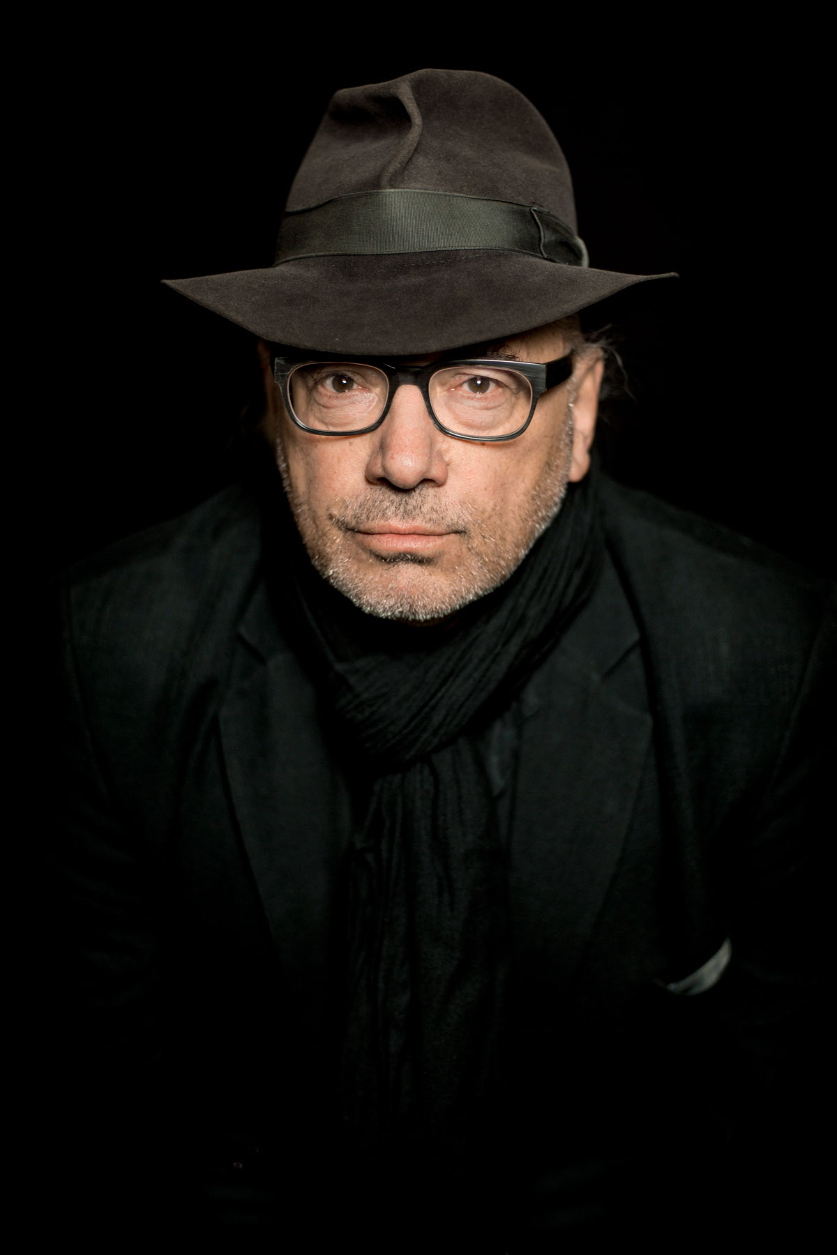 Nico Helminger trägt einen Anzug, eine Brille und einen Hut.