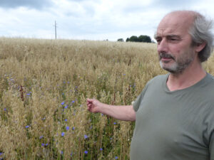Henk Van der Heyde dans son champ de la vallée de Clairefontaine, dont l’équilibre est menacé par la construction de plusieurs dizaines de logements. (Photo : Isabelle Cridlig)