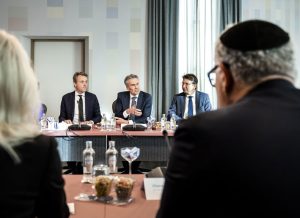 Nach den antisemitischen Ausschreitungen in Amsterdam: Der niederländische Premierminister Dick Schoof (Mitte) im Gespräch mit Repräsentant*innen der jüdischen Gemeinde am 12. November in Den Haag. (Foto: EPA-EFE/REMKO DE WAAL)