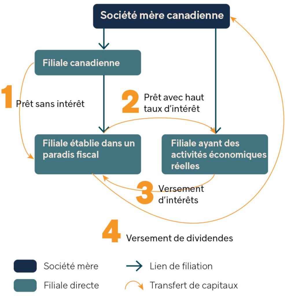 Quand on fait état d’une perméabilité entre les élites financières et économiques d’une part et l’appareil politique de l’autre, il faut avoir des preuves pour soutenir une telle affirmation. Dans notre recherche, nous avons fait des découvertes historiques étonnantes. Nous avons remarqué que les multinationales canadiennes utilisaient beaucoup la stratégie de la dette intragroupe et nous avons cherché la genèse de cette échappatoire fiscale au Canada. Cette stratégie avait fait l’objet d’un rapport du bureau de la vérificatrice générale du Canada dès 1992 [1]. Celle-ci y détaillait les stratégies avec des schémas, expliquait les mécanismes, mais elle proposait aussi des solutions, applicables d’un coup de crayon. Le ministère des Finances s’en était saisi et avait publié son propre rapport trois ans plus tard. Il avait calculé que pour l’année 1994, cette stratégie avait occasionné des pertes équivalentes à 6,5 milliards de dollars canadiens d’aujourd’hui (4,4 milliards d’euros). Tout le monde était donc informé, mais il ne s’est rien passé jusqu’à 2007, quand le gouvernement conservateur de l’époque avait annoncé un avant-projet de loi pour limiter cette stratégie reposant sur la déductibilité des intérêts. Une source anonyme, qui évolue dans le milieu, a témoigné de la réaction et de la pression exercée par les entreprises avec lesquelles elle travaillait. Elle nous a raconté qu’elles avaient suffisamment rué dans les brancards pour faire reculer le gouvernement. Il s’agit d’un exemple parmi tant d’autres, mais on a pu le documenter précisément.