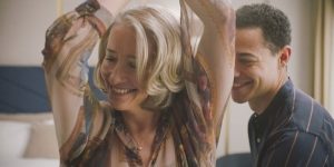 Anders verhält es sich mit Leo. Er ist, wie er selbst immer wieder betont, eine Fantasie und versucht demgemäß stets das zu sein, was Nancy gerade braucht: Mal lässt er sie den Ton angeben, mal gibt er selbst Anregungen. Mit ihrem unangemessenen Interesse an seinem persönlichen Leben gelingt es Nancy dabei immer wieder, ihn aus der Reserve zu locken. „Are you real?“, fragt Nancy ihn an einer Stelle und als Zuschauer*in merkt man schnell: Nein, ist er nicht, er ist lediglich ein Vehikel für die Entwicklung der Figur Nancy. In dem Sinne spielt es keine Rolle, ob er ein Escort, ein Sexualassistent oder, wie Tom in Maria Schraders „Ich bin dein Mensch“, ein Roboter ist.