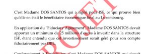 C’est un de ces documents tellement limpides qui font vibrer le cœur de chaque journaliste qui se plonge dans une montagne de documents telle que celle des Luanda Leaks. Il ne contient pas uniquement des données et des noms, mais aussi toute l’histoire qui se trouve derrière. Ce document, c’est un projet de transaction secrète censé terminer un litige entre la Deutsche Bank Luxembourg (DBL) et Isabel dos Santos (tout comme sa mère Tatiana Kukanova, devenue Regan). L’objet du conflit est une sicav appelée « Investment Select Fund IV ». Et un des nombreux avantages de ce document est qu’il ne laisse aucun doute sur le fait qu’Isabel dos Santos a bel et bien été la bénéficiaire effective du produit financier en question. Une attribution qui aurait été impossible en ne consultant que les extraits publiés au Luxembourg Business Registry. Il semble bien qu’il s’agisse d’une « shelf company », véhicule financier prêt-à-porter que chaque paradis fiscal a au menu. Le fait que des fonds de même nom (numérotés en romain I à V) existent sans que rien ne puisse les rapprocher favorise cette hypothèse.