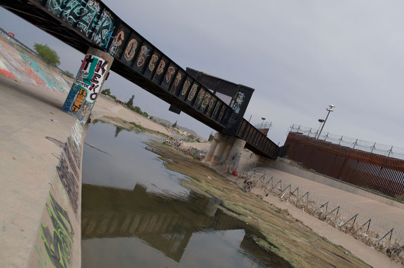 Direkt am Grenzzaun ist es ruhig geworden. Niemand campiert mehr auf der großen staubigen Freifläche vor dem Grenzstreifen, darauf hoffend, dass die „US Border Patrol“ vielleicht doch eines der Tore im Zaun öffnen wird. Auch die kleinen Menschengruppen gibt es nicht mehr, die man früher häufig gesehen hat: Die Rucksäcke geschultert, kleine Kinder an der Hand, in der sengenden Wüstensonne den Betonkanal des Rio Bravo entlangeilend, auf der Suche nach einem Schlupfloch in den Klingendrahtfeldern. Stille herrscht auch unter der Grenzbrücke Santa Fe, die die Stadtzentren von El Paso in Texas und Ciudad Juárez in Mexiko verbindet. Der Wind weht über den Müll hinweg, der ans Ufer geschwemmt wurde.