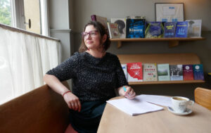 Mit der woxx hat sie sich an einem ganz speziellen Ort verabredet: dem Café de la Place in Stadtviertel Bonneweg, das dank seiner Ecklage von zwei Seiten von Sonnenlicht durchflutet wird, wodurch man beim Eintreten gleich in eine warme, behagliche Atmosphäre eintaucht. Das Café ist Teil des Verlagssitzes, hier finden die Angestellten zu Meetings zusammen, doch es werden auch öffentliche Veranstaltungen wie Lesungen abgehalten. Dann sind alle Tische besetzt – und das Publikum scheint durch den großen Wandspiegel noch verdoppelt.