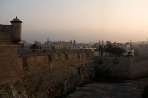 Drei junge Migranten, Wassin, Moustafa und Ismael, alle 17 Jahre alt, sind gerade auf dem Weg vom Supermarkt im arabisch geprägten, marginalisierten Viertel Barrio El Real zurück ins Auffanglager im Fort. Fast fünf Kilometer müssen sie in der selbst im Winter schweißtreibenden Sonne bergan gehen, an kargen Olivenhainen vorbei bis zum Stadtrand. Wassin ist seit über zwei Jahren in Melilla und hat etwas Spanisch gelernt, sonst spricht er marokkanisches Arabisch. Er macht eine Ausbildung zum Mechaniker, träumt von Arbeit im europäischen Teil Spaniens und von einem Auto. „In drei Monaten habe ich endlich Geburtstag“, sagt er voller Vorfreude, auch wenn sein verstauchter Knöchel ihm gerade Schmerzen bereitet und er sich auf Krücken voranschleppt. „Ist beim Klettern auf eine Pinie passiert“, erzählt er. Alle drei kommen aus dem grenznahen Umland von Melilla. Auf die Frage, wie Wassin nach Melilla gelangt sei, sagt er: „Ganz normal.“ Über den Wall sei er jedenfalls nicht gesprungen, sonst hätte er tiefe Narben an den Händen – vom Nato-Draht.