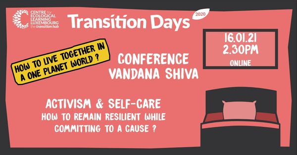 La conférence « Activism & self-care – comment rester résilient tout en s’engageant ? » s’inscrit dans cet ordre d’idée. L’activiste et auteure indienne Vandana Shiva, pionnière de l’écoféminisme et lauréate du prix Nobel alternatif 1993, constitue sans doute un modèle pour un engagement différent, moins fonctionnaliste et plus holistique.