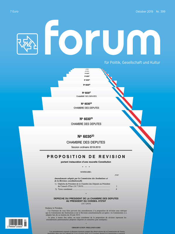 Die luxemburgische Verfassung bildet das Kernstück der September-Ausgabe der Zeitschrift „forum“. Die Leser*innen erwarten unter anderem Danielle Wolters (Doktorandin an der Universität Luxemburg) Überlegungen zur Position des internationalen Rechts in der luxemburgischen Verfassung, eine prägnante Zusammenfassung der Verfassungsentwicklung...
