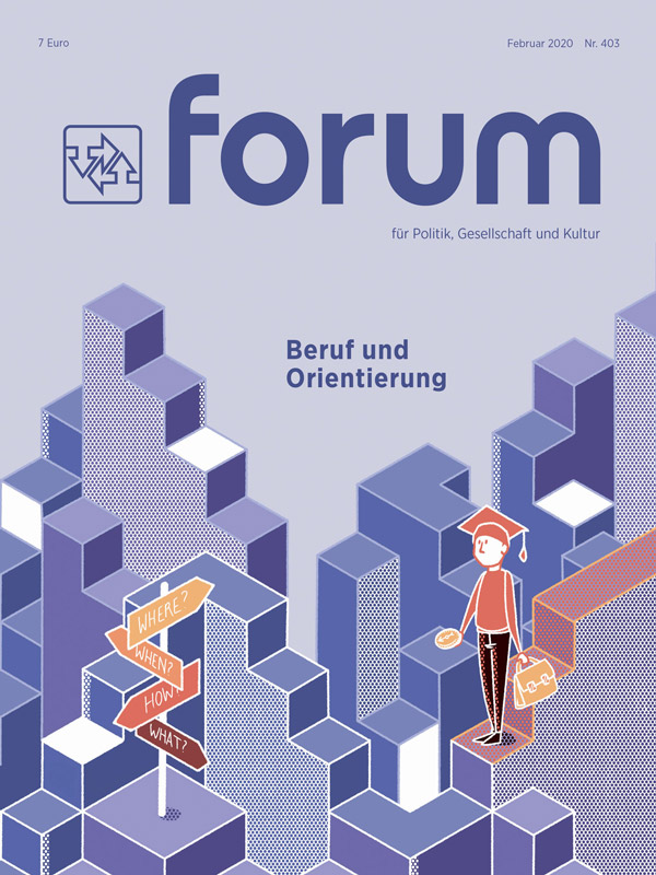 „Where? When? How? What?“ ist auf dem Cover der neusten Forum-Ausgabe zu lesen. Vor den entsprechenden Schildern, die mit diesen Frageworten beschriftet sind, steht ein etwas ratlos dreinschauender Doktorand – erkennbar an seinem Hut. Das Thema des Hefts geht aber über den Einstieg ins Berufsleben hinaus: Neben den veränderten Anforderungen...