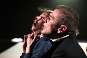Valéry Plancke et Jules Werner dans « Mesure pour mesure » : sous des dehors stoïques, la passion sommeille. (Photos : Bohumil Kostohryz)