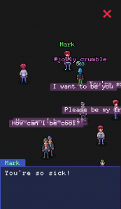 Ein weiteres Werk beschäftigt sich mit den Tweets depressiver Twitternutzer*innen. Diese Botschaften werden ohne Kontext gezeigt: Was in echten Spiegeln funktioniert, wirkt in einem Handyspiel eher witzlos. Auch stellt sich hier die Frage, ob Webb überhaupt die Erlaubnis der Twitter*innen hat, mit ihren Texten Geld zu verdienen.