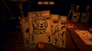 Einerseits heißt das, dass man zwischen den einzelnen Partien herumlaufen und die Hütte untersuchen kann, in der es mehrere Rätsel zu entdecken und lösen gibt. Andererseits heißt das auch, dass die Körperlichkeit eines Kartenspiels simuliert wurde. Anders als bei anderen virtuellen Kartenspielen sieht man nicht die Karten auf der Hand und auf dem Spielfeld gleichzeitig, sondern muss sich vorbeugen, um die Karten des Gegenübers genau erkennen zu können.