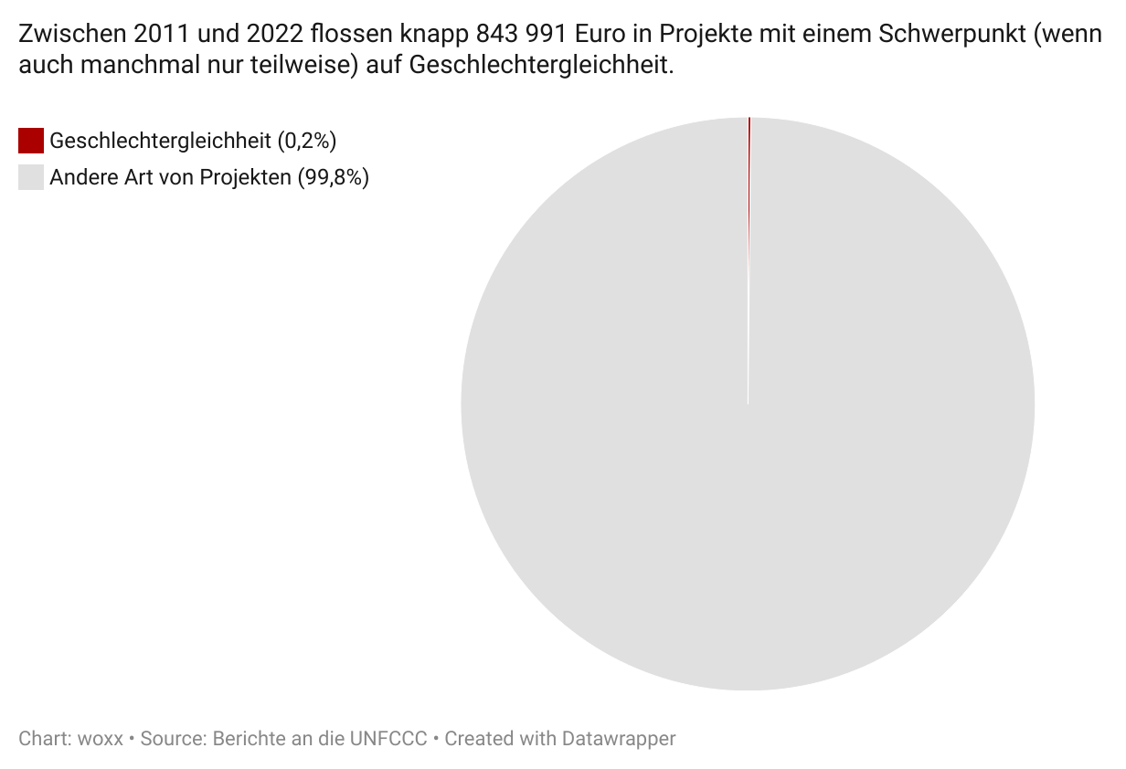 Wie schon bei den Angaben zu den Empfängerländern ist auch bei einem Großteil der Finanzbeträge nicht klar ersichtlich, für welche Projekte die Gelder verwendet werden. Soweit solche Details angegeben wurden, fließen 0,2 Prozent der Mittel in Projekte zur Gleichstellung der Geschlechter – obwohl Frauen und Mädchen stärker von der Klimakrise betroffen sind. (Copyright: María Elorza Saralegui/woxx)